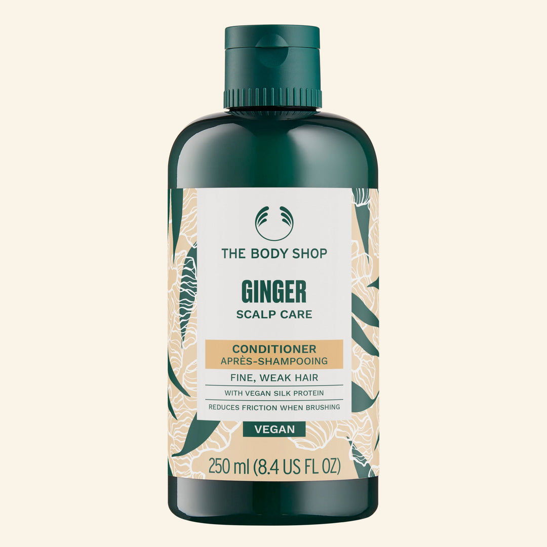 The Ginger Scalp Care Conditioner is a gentle formula infused with ginger essential oil, birch bark, white willow bark extracts, and aloe vera. It nourishes the hair follicles to help combat hair loss and improve elasticity.